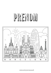 Ce coloriage gratuit représente les monuments emblématiques de Barcelone comme la Sagrada Família, la tour Glòries, l’Arc de Triomf ou la Casa Batlló. Il est idéal pour découvrir l'architecture catalane tout en s'amusant. Le prénom de l’enfant peut être ajouté avant impression pour créer une activité unique autour du voyage, de la culture et des grandes villes du monde.