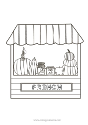 Coloriage prénom : 5 étagères de bocaux à motifs – confitures, friandises et conserves