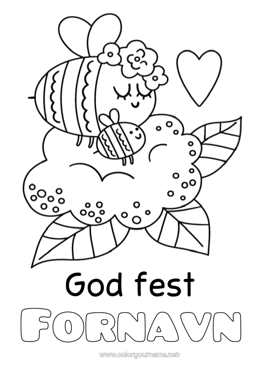 Farvelægning for at ønske din mor eller bedstemor en god fest, mor bi med sin baby på en stor blomst. Kan tilpasses med en besked som "kære mor" eller "elskede bedstemor", før du printer det.