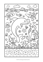 Ordet "Navn" øverst på siden kan tilpasses til hvert barn, hvilket gør farvelægningen unik og speciel. Børnene kan ikke kun have det sjovt med at farvelægge de forskellige havdyr, men også lære mere om mangfoldigheden af marine arter.