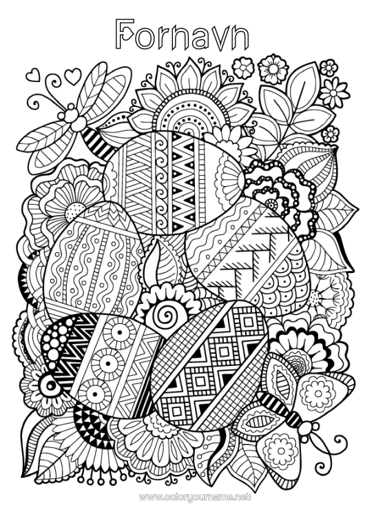 Tilføj dit personlige præg til denne påske- og forårmandala ved at indtaste et navn eller en personlig besked som "god ægjagt" for eksempel.