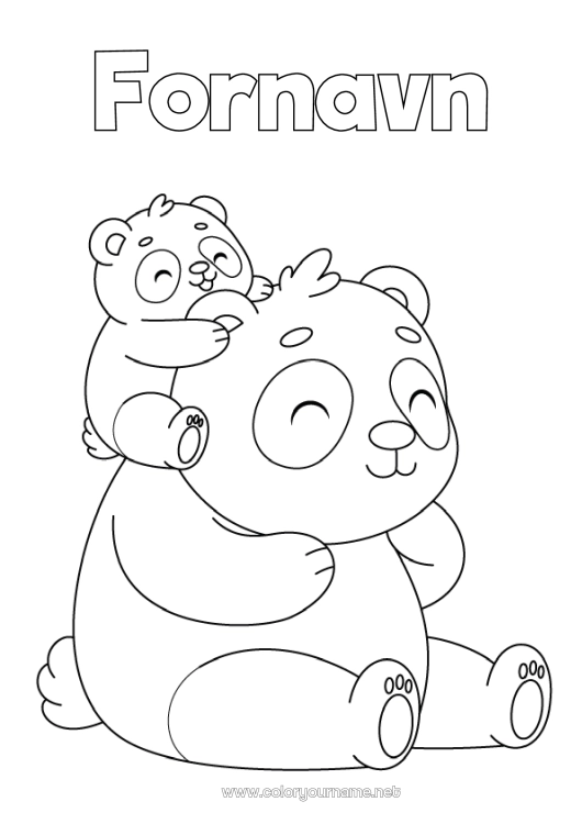 Denne gratis malebogside viser en yndig baby panda, der sidder på ryggen af sin forælder. Et perfekt øjeblik af ømhed for små børn! Navnet kan skrives øverst på siden for en unik farvelægning, der nemt kan downloades og printes.