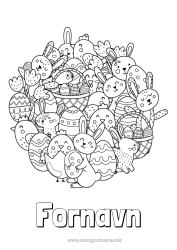 Opdag vores sjove og lærerige påskefarvelægninger! Disse farvelægninger fremhæver de traditionelle symboler for højtiden, såsom påskeharer, farvede æg, kyllinger, chokolade og påskeklokker. Ideelle til aktiviteter i skolen eller derhjemme, vil disse farvelægninger glæde både små og store børn. Og for at give det et personligt præg, kan du tilpasse dem med dit valg af navn eller besked. Download vores farvelægninger nu og opmuntr dit barn til at udforske sin kreativitet og fejre påsken på en sjov måde!