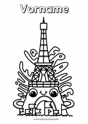 Kawaii Eiffelturm 'Vive la France' Malvorlage