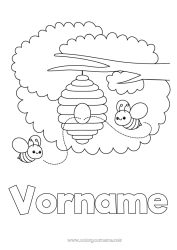 Bienenstock & Bienen Ausmalbild – Mit Namen personalisieren