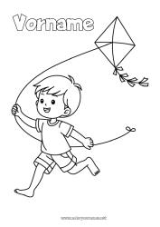 Ausmalbild von Kindern, die mit Drachen spielen – Personalisierbar