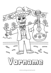 Ausmalbild Día de los Muertos – Mexikanischer Musiker-Skelett zum Ausdrucken und Personalisieren