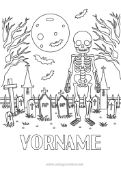 Skelett im Spukfriedhof Ausmalbild – Personalisierbar