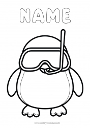 Easy coloring for children: penguin with a diving mask