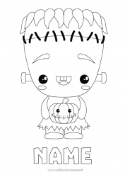 Discover our collection of free coloring pages featuring the famous character Frankenstein. Frankenstein is an iconic figure in horror literature, created by the writer Mary Shelley. He is a creature assembled from pieces of corpses and brought to life by Dr. Victor Frankenstein. Frankenstein coloring pages are perfect for adding a touch of mystery and horror to your coloring activities. Children will enjoy bringing this legendary character to life using their palette of colors. Customize these coloring pages with a short message or a name to make them even more special for kids.