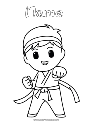 Free printable coloring pages featuring karate. Karate is a captivating martial art that combines strength, discipline, and agility. On this page, you will find images depicting determined karatekas mastering this ancient art. Here are some karate elements you can explore through these drawings: Karateka, gi (karate uniform), belt, dojo (training hall)... To personalize these coloring pages, add a short message (less than 30 characters) or the child's name before printing.