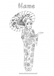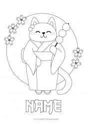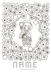 Kokeshi and Cherry Blossoms: Personalized Japanese Coloring Page