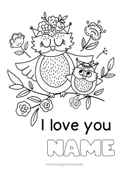 Owls are mysterious night birds, often associated with wisdom and magic. They are birds with piercing eyes, often with soft and luxurious plumage. Owls are known for their distinctive call, which can be heard in forests and woods at night.<br> Some are famous like the Hedwig owl in Harry Potter, Archimedes in the Aristocats, Owl in Winnie the Pooh, Tawny or the Bubo owl... Here are our customizable owl coloring pages: Add a first name or text of your choice to our owl images to create unique and fun coloring pages for children. Print and color now!