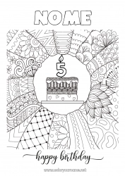 Colorazione mandala di compleanno con topini e una torta da personalizzare.