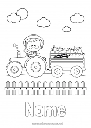 Colorazione veicolo agricolo per bambini, mietitrebbia carina con occhi e bocca. Macchina agricola da personalizzare con un nome o un testo a scelta prima della stampa.