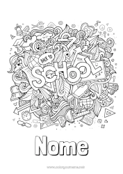 Pagina da colorare con messaggio personalizzabile : simboli scolastici