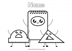 Coloriage forniture scolastiche kawaii da stampare con nome personalizzato.