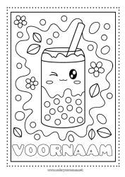 De gedetailleerde tekening biedt de mogelijkheid om de tapioca parels, het patroon van het rietje en de toppings van de bubble tea in te kleuren. Om deze activiteit nog specialer te maken, kunt u de pagina personaliseren met een naam of een kort bericht in de daarvoor bestemde ruimte, waar momenteel het woord "naam" staat.