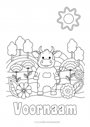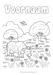 Educatieve activiteit voor kinderen: het kind moet de boerderijdieren vinden: varkens, koeien, schapen, kippen, vlinders, lammeren, paarden. Vervolgens moeten ze de dieren tellen voordat ze ze inkleuren. Een tekening die je kunt personaliseren met de naam van een leerling of een boodschap zoals 'fijne vakantie' of 'tel de dieren', 'schatzoeken' bijvoorbeeld.