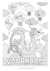 Gepersonaliseerde kleurplaat: Kersenbloesem (Sakura) en Chinese lantaarns