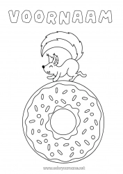 Kleurplaat met schattige bosdieren – Egel, vos, uil, eekhoorn om te printen met naam.