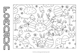 Fargelegging av en søt liten kanin med en kvist av liljekonvall.
