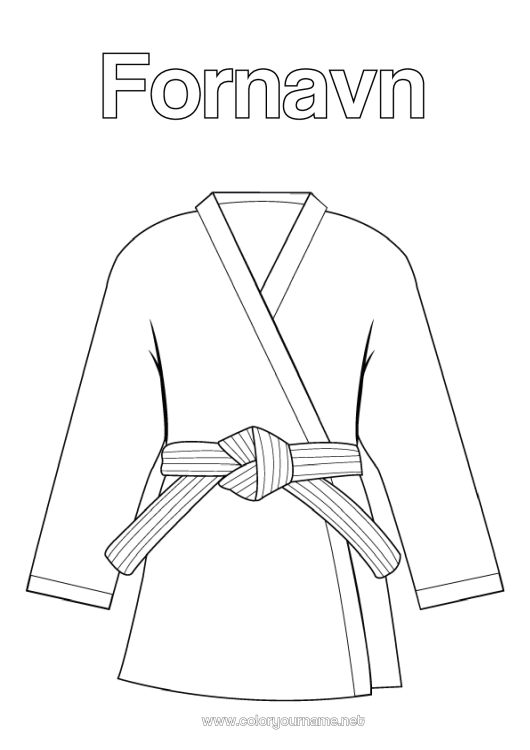 Denne gratis fargeleggingsiden viser en kampsport-kimono med et tydelig knyttet belte. Ideell for entusiaster av judo, karate, taekwondo, jiu-jitsu og andre kampsporter, fremhever denne tegningen den ikoniske drakten til utøverne.