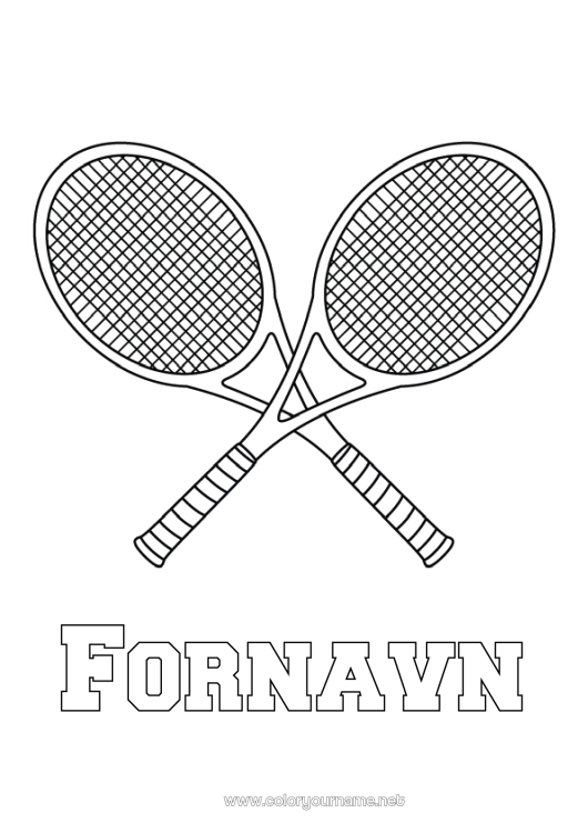 Fargeleggingssiden med racketene kan tilpasses med navnet på en klubb eller fornavnet til en tennisspiller, for eksempel.