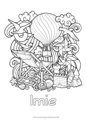 Kolorowanka mandala symbole lata: leżak, balon na gorące powietrze, plaża