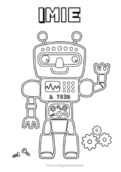 Kolorowanka z zabawnymi robotami do personalizacji imieniem
