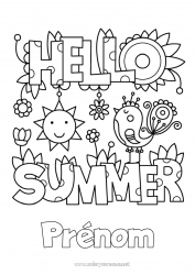 Coloriage 'Hello Summer' avec des fleurs un oiseau et un soleil