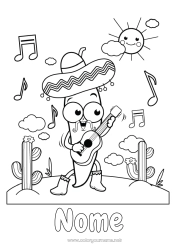 Bem-vindo à nossa página de desenhos grátis para imprimir em torno do Cinco de Mayo! Esta festa é celebrada em 5 de maio de cada ano para comemorar a vitória do exército mexicano sobre as forças francesas na batalha de Puebla em 1862. Em nossos desenhos grátis, você encontrará os símbolos associados ao Cinco de Mayo, como sombreros, guitarras, piñatas, cactos e bandeiras mexicanas. Cada desenho pode ser personalizado com uma mensagem curta ou um nome antes de ser impresso. Aqui estão alguns exemplos de mensagens que você pode adicionar aos seus desenhos: Feliz Cinco de Mayo! Viva México! Olé! Divirta-se! Hora da festa!