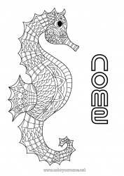 Aqui está a nossa seleção de desenhos de cavalos-marinhos para colorir. O cavalo-marinho é um animal marinho colorido que vive em mares quentes e temperados. Ele tem uma cabeça em forma de cavalo e uma cauda de peixe. É coberto por escamas brilhantes e coloridas que podem ser de diferentes cores, como azul, verde, vermelho ou laranja. Possui barbatanas e nadadeiras que o ajudam a nadar rapidamente na água. Os cavalos-marinhos podem ser vistos em recifes de coral e cavernas subaquáticas, onde gostam de se esconder entre as rochas e os corais para se protegerem de predadores. O cavalo-marinho é considerado um animal mágico em algumas culturas. Personalize o seu desenho de cavalo-marinho com o nome ou a mensagem de sua escolha.