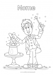 Esta página de coloração apresenta um gato mágico envolto em uma capa, usando um chapéu e segurando uma varinha mágica. Ele emerge de uma grande nuvem de magia, onde há frascos de poções, um caldeirão mágico e um pequeno dragão gecko borboleta. O gato mágico provavelmente acabou de lançar um feitiço. A coloração gratuita pode ser personalizada com uma mensagem breve ou um nome antes da impressão. Por exemplo: "Gato encantador!" "Magia felina." "Feitiço bem-sucedido!" "Gato mágico." "Chapéu encantado." "Magia do gato." "Gato-sorcerer." "Miau mágico." "Encantamento felino." "Varinha poderosa."