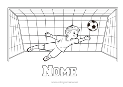 Goleiro com bola na frente do gol – Desenho para colorir com nome grátis para imprimir