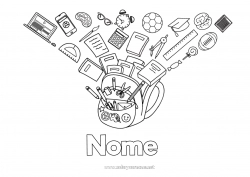 Coloração de volta às aulas para personalizar – Materiais e alunos