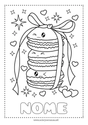 Aqui está a nossa seleção de páginas para colorir de macarons. Um macaron é um pequeno bolo redondo composto por duas conchas leves feitas de pó de amêndoa, açúcar e claras de ovos, coladas juntas por um delicioso recheio cremoso no centro. Os macarons vêm em todos os tipos de sabores, tanto salgados quanto doces, e cores. Cada página para colorir de macaron pode ser personalizada com uma mensagem curta ou um nome antes de imprimir.
