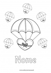 Página para colorir : Paraquedas e corações