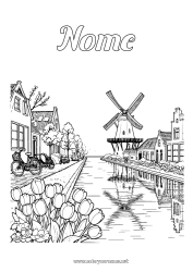 Coloração de Tulipas e Moinhos da Holanda para Personalizar