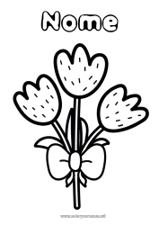Desenho para colorir personalizável de buquê de tulipas para imprimir.