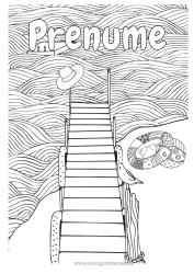 Pagina de colorat reprezint un ocean compus din cercuri suprapuse, care simbolizează valuri repetitive. În mijlocul acestor valuri, o mică barcă de velă navighează. Barca pare puțin pierdută în mijlocul unui ocean imens. Desenul este destul de detaliat, cu numeroase spații de colorat, de exemplu, nuanțe de albastru pentru a reprezenta apa. În partea de jos, cuvântul "Prenume" așteaptă să fie personalizat cu numele copilului care se va distra dând viață acestei mări în mișcare. Coloriți gratuit pentru a fi tipărit pentru adulți sau copii mai mari.