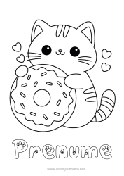Pagină de colorat gratuită care reprezintă un assortiment de gogoși drăguțe decorate cu fețe de animale, cum ar fi o pisică, un iepure, o unicorni, un curcubeu, perfectă pentru a stimula creativitatea copiilor și a pasionaților de cultura kawaii. Cu un spațiu pentru "NUME" sau un mesaj scurt în partea de jos, această pagină poate fi personalizată pentru fiecare copil, făcând coloratul unic.