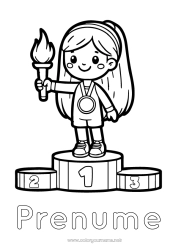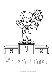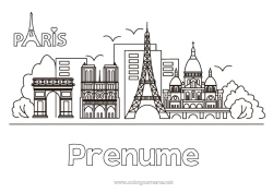 Deasupra imaginii, textul "I love Paris" subliniază dragostea și admirația pentru orașul luminilor. În partea de jos a paginii, cuvântul "Prenume" este scris cu litere mari mecanice, permițând personalizarea acestei pagini de colorat cu numele copilului, făcând fiecare pagină unică și specială. Această pagină de colorat poate fi personalizată, descărcată și imprimată gratuit, oferind o activitate creativă și educativă ideală pentru copiii fascinați de Jocurile Olimpice și frumusețea Parisului.