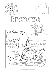 Colorare cu nume și pisici kawaii, narval, soare și popcorn – Gratuit de imprimat