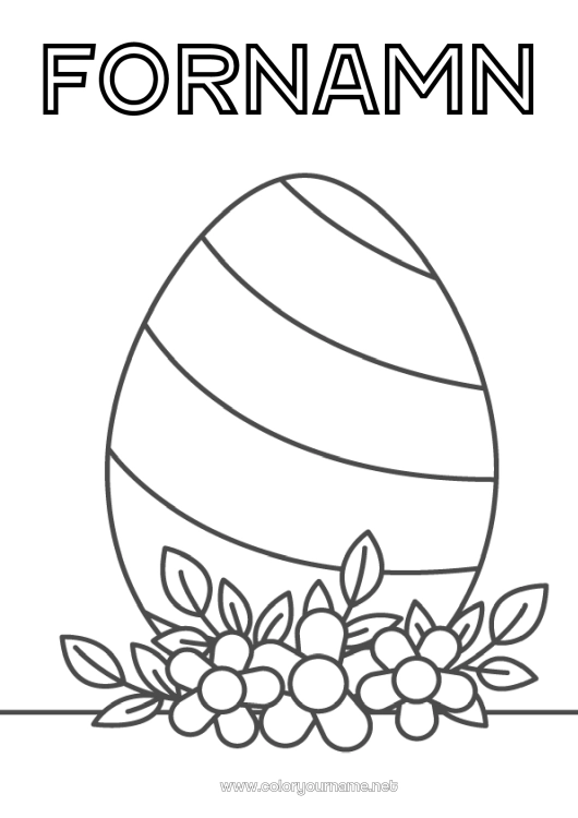 Färgläggning av stort påskägg med snedställda linjer och blommor, att anpassa med ett namn eller ett meddelande på påsktemat.
