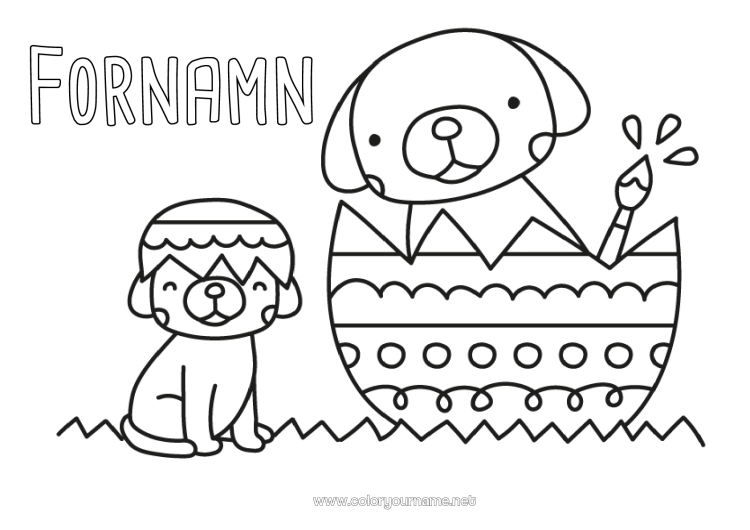 Påskfärgläggning: Valpar och Dekorerat Ägg – Anpassningsbart