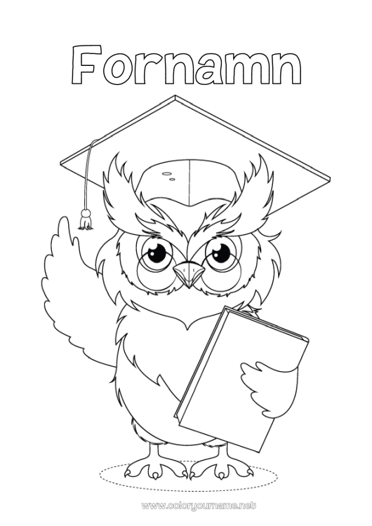 Gratis utskrivbar målarbild: Möt Professor Ugglan av Visdom! Ugglan bär glasögon som ger honom ett intelligent utseende, en mössa som påminner om hans roll som lärare, och han håller en bok fylld med kunskap. Ugglor förknippas ofta med visdom, och denna professoruggla personifierar denna idé genom att entusiastiskt dela med sig av sin kunskap.